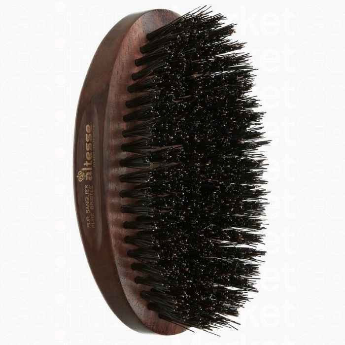 Die Altesse Military Brush 1319P ist das Flaggschiff der klassischen Herren-Kollektion aus dem Hause Altesse (Isinis). Das "Military"-Design zeichnet sich durch das Fehlen eines Griffs aus – eine Form, die ursprünglich für Soldaten entwickelt wurde, um Platz im Reisegepäck zu sparen und gleichzeitig maximale Kraft und Kontrolle beim Bürsten zu ermöglichen. Mit stolzen 9 Reihen ist dieses Modell besonders breit und effizient.