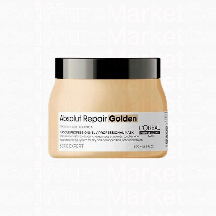 Le Masque Golden Absolut Repair de L'Oréal Professionnel Série Expert est formulé avec des protéines de quinoa doré qui reconstruisent la fibre capillaire. Sa technologie cream-in-gel offre une texture légère et aérienne pour une réparation profonde instantanée, spécialement conçue pour les cheveux fins et abîmés.