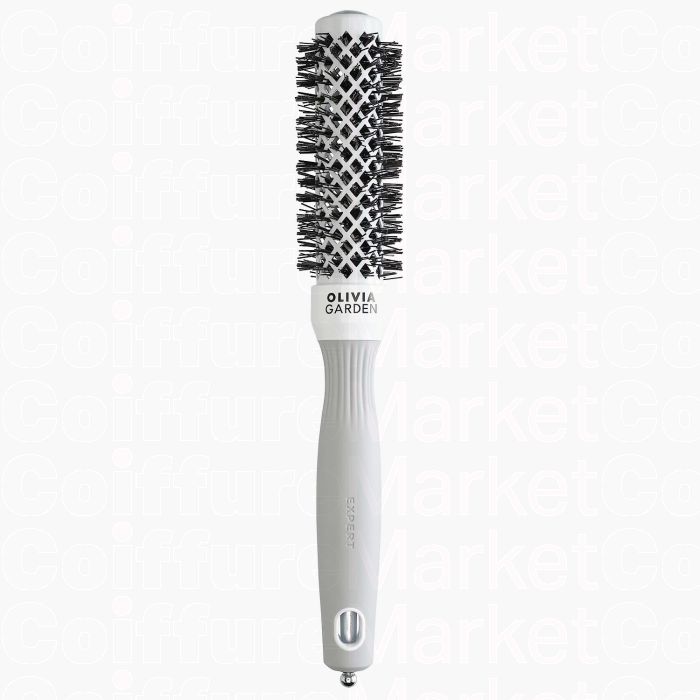 Brosse brushing professionnelle Olivia Garden à technologie céramique et ionique. Le corps en céramique distribue la chaleur du sèche-cheveux de manière uniforme et rapide sur toute la surface pour un coiffage plus efficace et des résultats professionnels durables.